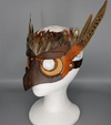 I discovered a leatherworking pattern for an owl mask and personalized it by adding feathers for extra character.